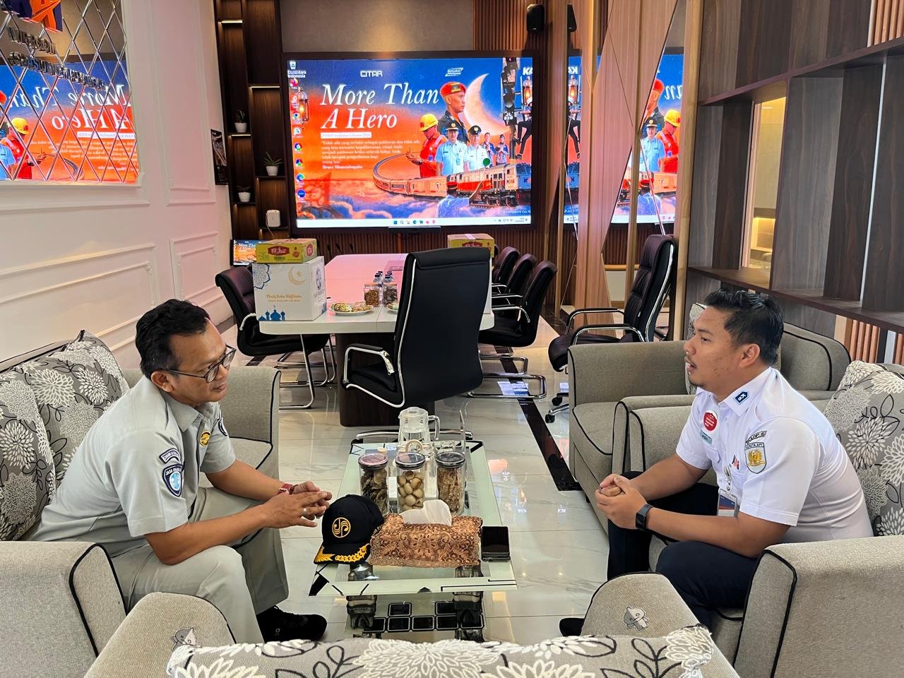 Selanjutnya, kegiatan dilanjutkan dengan kunjungan ke Stasiun Lempuyangan guna memonitor arus balik pemudik yang akan kembali ke daerah asal masing-masing. Dalam kesempatan tersebut, rombongan juga melakukan koordinasi dengan Kepala Stasiun Lempuyangan, Lusiyanto Priadi, terkait kondisi operasional dan pelayanan penumpang. Selain itu, sebagai bentuk apresiasi dan dukungan terhadap petugas di lapangan, diserahkan bingkisan kepada pihak stasiun.