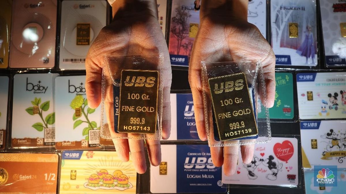 Harga jual emas Galeri24 turun dari Rp2.418.000 menjadi Rp2.383.000 per gram. Produk emas UBS juga ikut melemah ke Rp2.385.000 per gram dari sebelumnya Rp2.422.000 per gram.