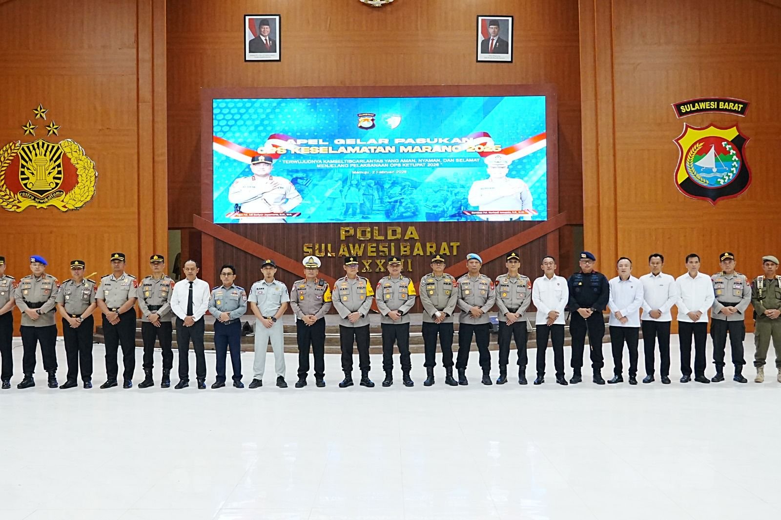 Mamuju – PT Jasa Raharja Cabang Mamuju turut berpartisipasi dalam kegiatan Apel Gelar Pasukan Operasi Keselamatan Marano Tahun 2026 yang dilaksanakan di Aula  Marannu Polda Sulawesi Barat, Kegiatan ini diselenggarakan oleh Kepolisian Daerah Sulawesi Barat sebagai bentuk kesiapan seluruh pemangku kepentingan guna menciptakan situasi Kamseltibcarlantas yang aman, nyaman dan selamat menjelang operasi ketupat (bulan suci Ramadhan dan idul fitri) di wilayah Sulawesi Barat. Senin (02/02/2026)