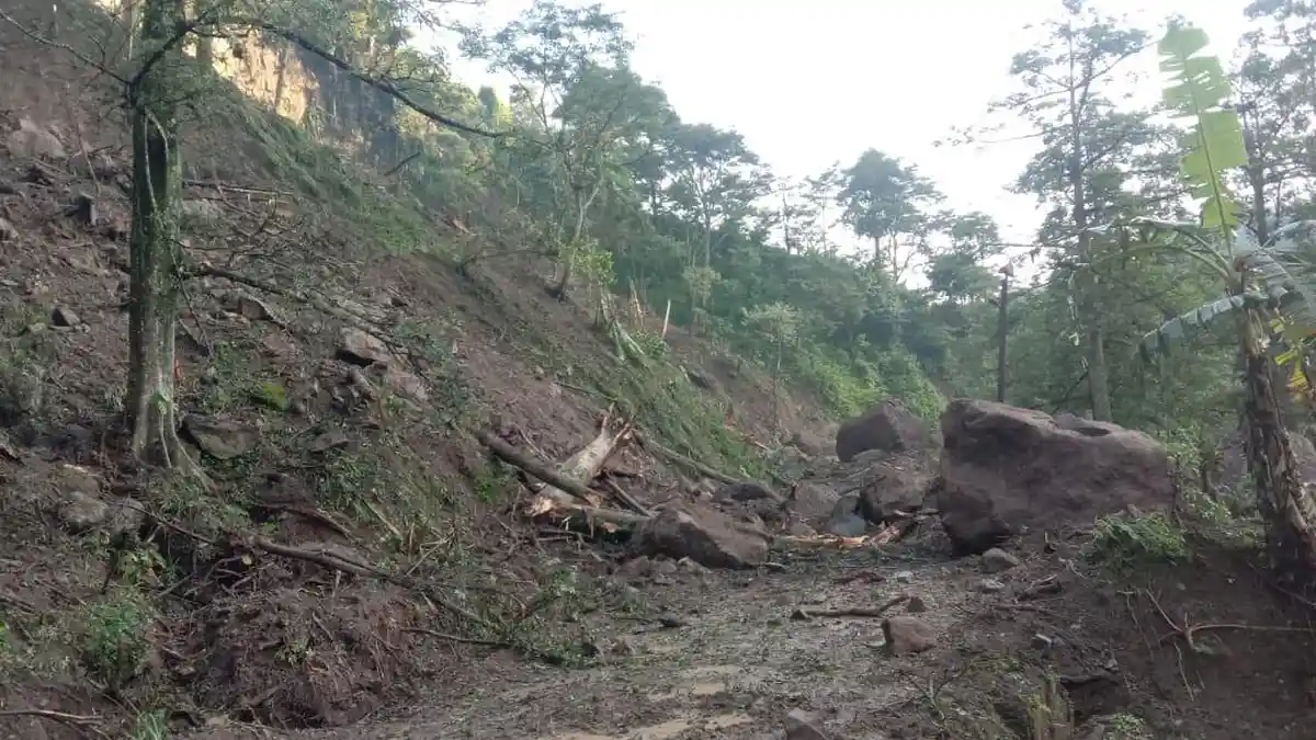 Akibatnya, jalan tersebut tidak dapat dilalui karena tertutup material longsor berupa tanah serta batu berukuran besar yang menutupi badan jalan.