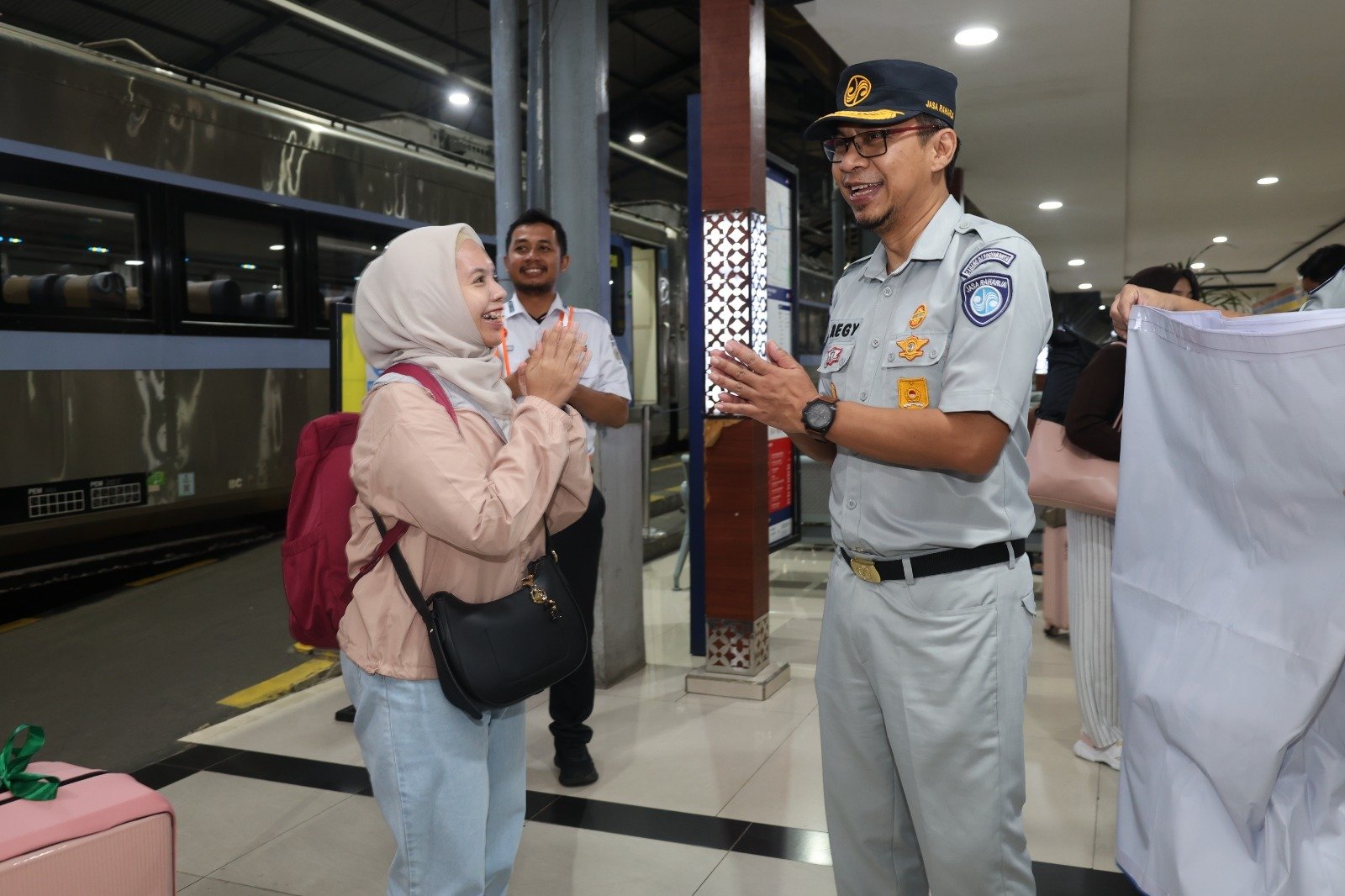 Yogyakarta — Dalam rangka memberikan dukungan pelayanan kepada masyarakat selama periode arus mudik Lebaran Tahun 2026, PT Jasa Raharja melaksanakan kegiatan penjemputan pemudik yang tiba menggunakan Kereta Api Senja Utama pada Rabu, 18 Maret 2026 pukul 01.47 WIB di Stasiun Lempuyangan. Kegiatan ini merupakan bentuk kehadiran PT Jasa Raharja dalam memastikan para penumpang yang tiba di wilayah Daerah Istimewa Yogyakarta dapat sampai di tempat tujuan dengan selamat.