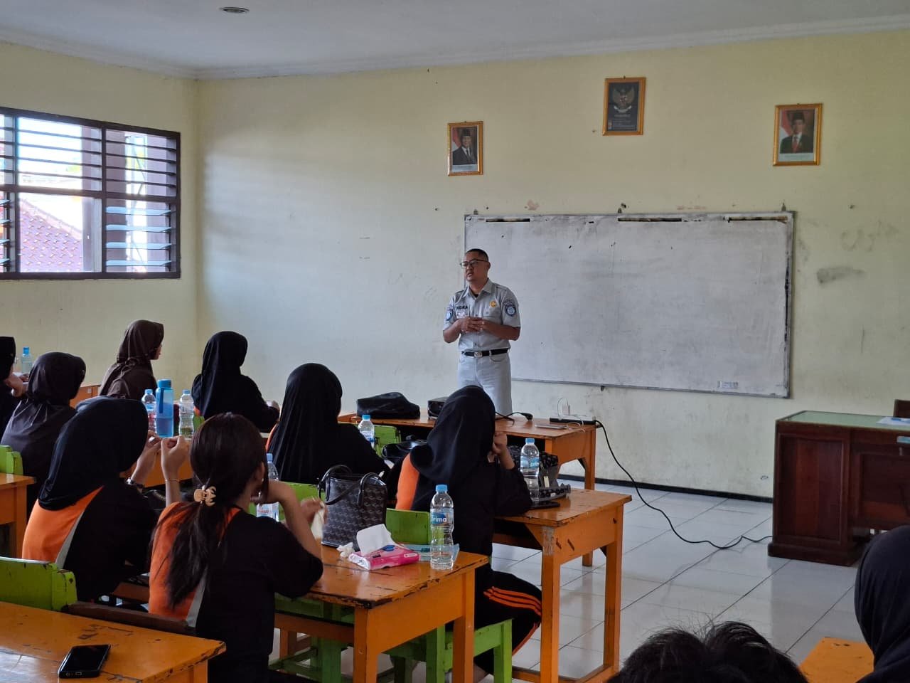 Selain sosialisasi, petugas juga melakukan pemeriksaan kelengkapan kendaraan dan dokumen berkendara sebagai upaya meningkatkan kesadaran hukum masyarakat di bidang lalu lintas.