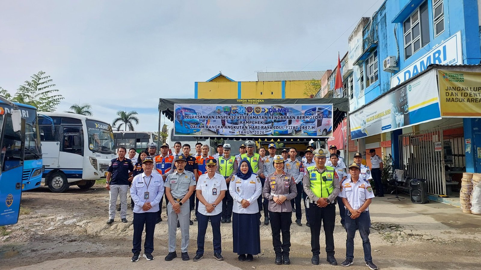 Tanjung Selor – Dalam rangka menyambut arus mudik Idul Fitri 1447 H, sinergi lintas sektor digelar melalui kegiatan ramp check terhadap armada Perum DAMRI di Tanjung Selor. Kegiatan ini menjadi langkah strategis untuk memastikan kesiapan transportasi umum dalam memberikan pelayanan yang aman, nyaman, dan selamat bagi masyarakat selama periode Ramadan dan Lebaran.Rabu 25 Februari 2026.